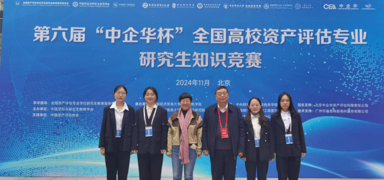 全国高校资产评估专业研究生知识竞赛是由全国资产评估专业学位研究生教育指导委员会指导,中国学位与研究生教育学会主办,本次比赛由首都经济贸易大学财政税务学院、首都经济贸易大学资产评估研究院承办,中央财经大学财政税务学院、中南财经政法大学工商管理学院、厦门大学评估研究中心协办,北京中企华资产评估有限责任公司冠名支持。本届知识竞赛主题为“资产评估赋能新质生产力提升”,来自全国28所高校的资产评估专业硕士研究生参加了竞赛。竞赛设一等奖1名,二等奖2名,三等奖3名,优秀奖若干。天游官网代表队由陈艳副教授带队,资产评估专业硕士研究生姜薇、杨晓、张一丹、朱益冰四位同学组成。竞赛分为初赛、复赛和决赛,包括统一笔试、案例分析和现场知识竞赛等多个环节,经过多轮比拼,天游官网代表队最终喜获三等奖。